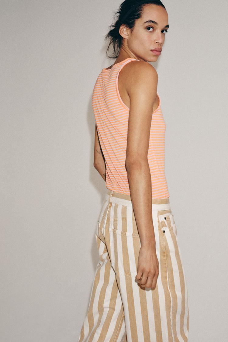 ZARA ФУТБОЛКА В СТИЛЕ РУСТИК В ПОЛОСКУ, ОТТЕНКИ ОРАНЖЕВОГО