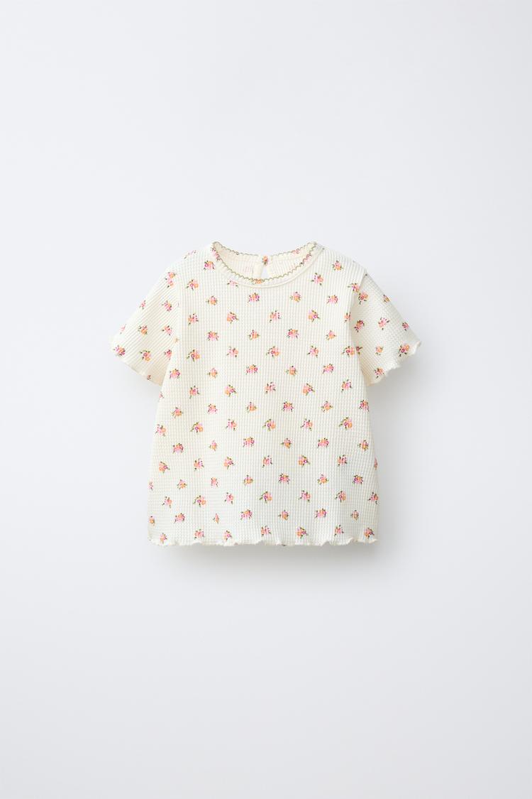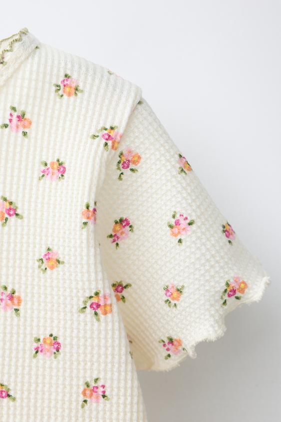 ZARA ФУТБОЛКА ВАФЕЛЬНЫЙ ЦВЕТОК, ЭКРЮ