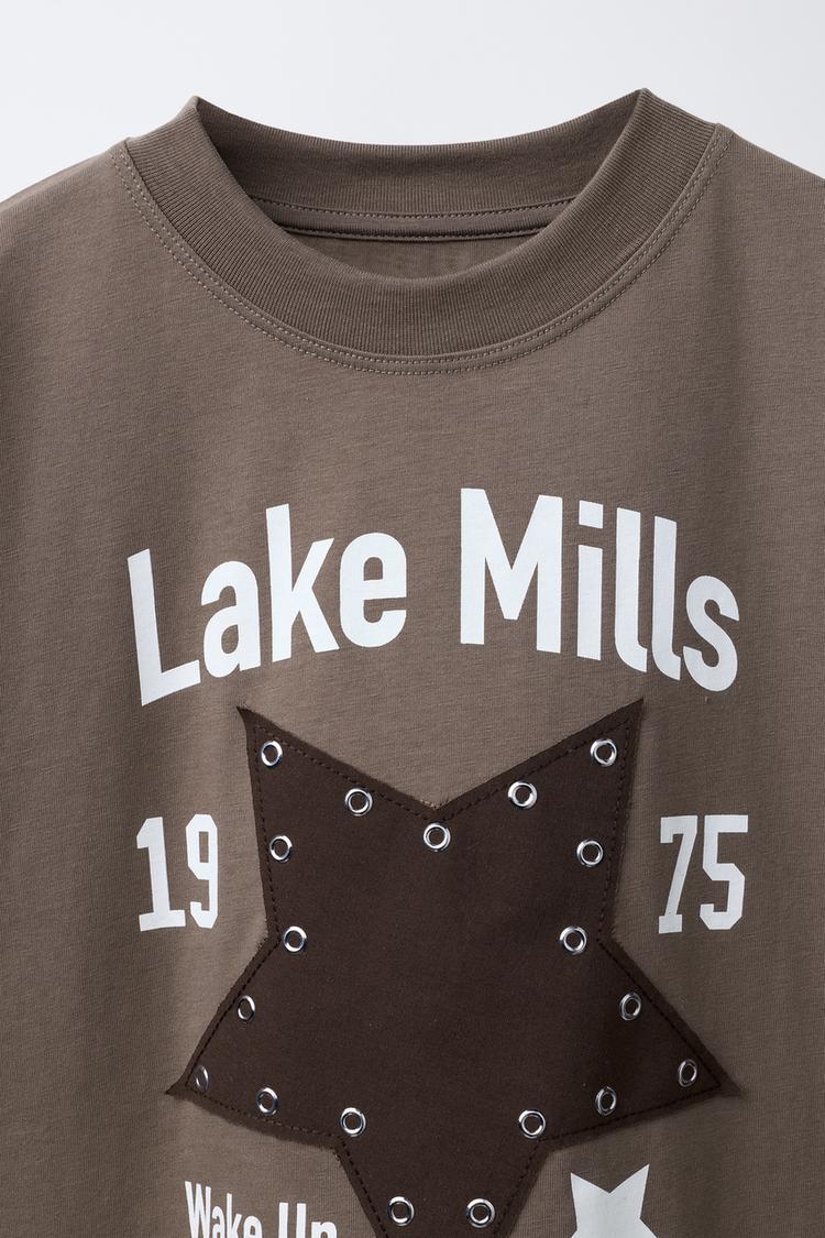 ZARA ФУТБОЛКА ЗВЕЗДА С ЛЮВЕРСАМИ, КОРИЧНЕВЫЙ