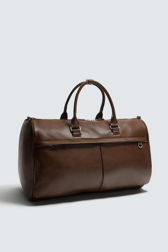 ZARA ГЛАДКАЯ ДОРОЖНАЯ СУМКА, КОРИЧНЕВЫЙ