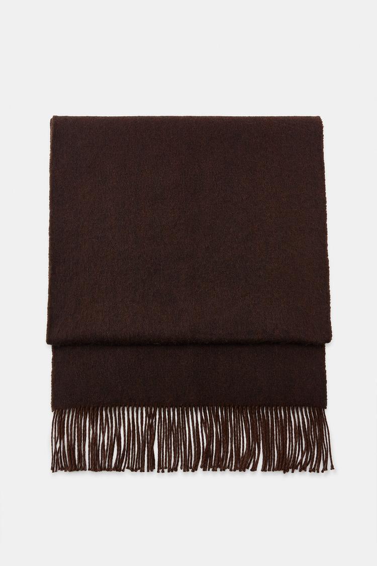 ZARA ГЛАДКИЙ МЯГКИЙ ШАРФ С БАХРОМОЙ, КОРИЧНЕВЫЙ
