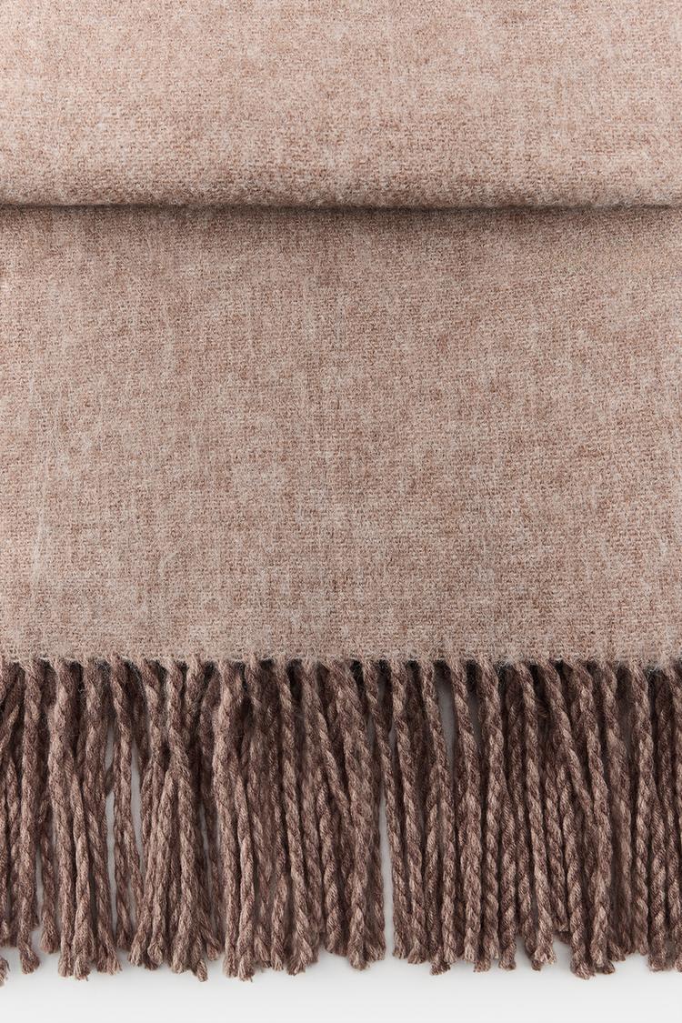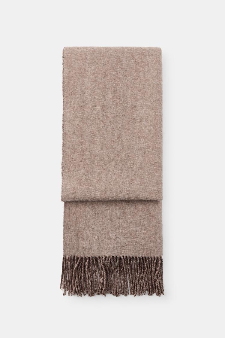 ZARA ГЛАДКИЙ МЯГКИЙ ШАРФ С БАХРОМОЙ, РЫЖЕВАТО-КОРИЧНЕВЫЙ