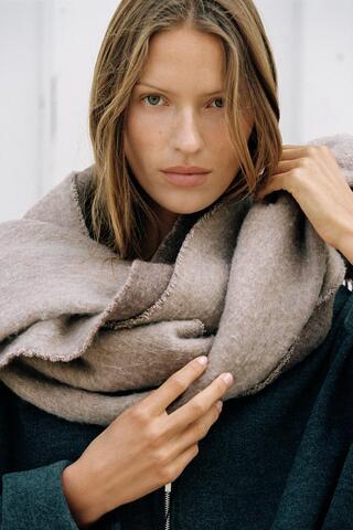 Гладкий шарф из смесовой ткани, 4% шерсти. Отделка бахромой в тон.