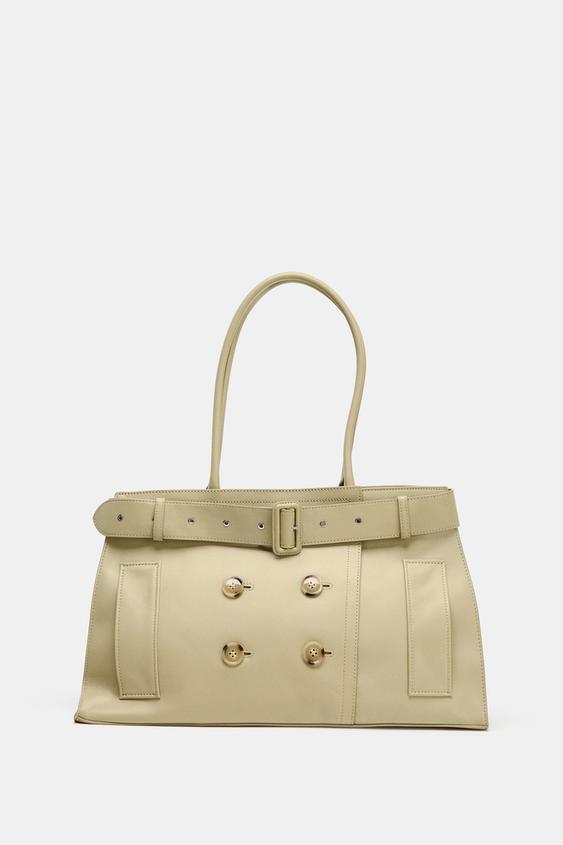 ZARA ГОРОДСКАЯ СУМКА ИЗ КОЖИ С РЕМНЕМ, БЕЖЕВЫЙ