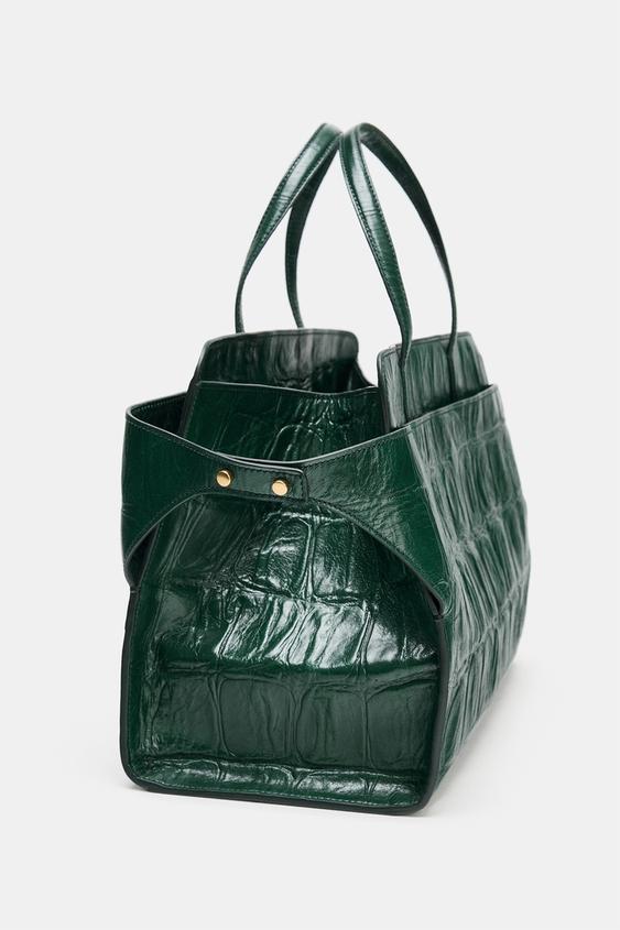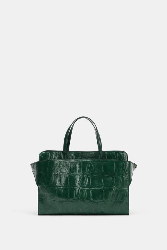 ZARA ГОРОДСКАЯ СУМКА ИЗ ТИСНЕНОЙ КОЖИ, ЗЕЛЕНЫЙ