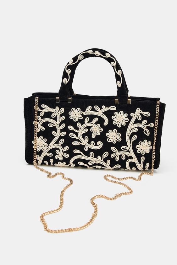 ZARA ГОРОДСКАЯ СУМКА С ВЫШИВКОЙ, ЧЕРНЫЙ