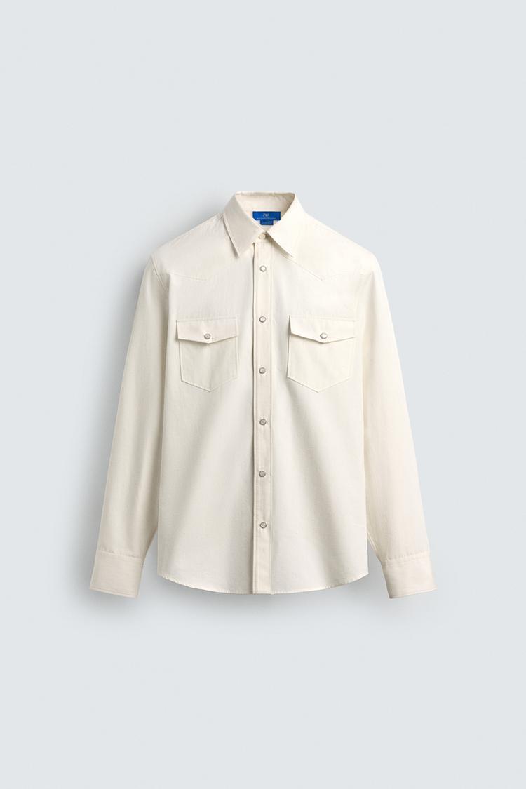 ZARА Х AARON LEVINE РУБАШКА В КОВБОЙСКОМ СТИЛЕ, БЕЛЫЙ