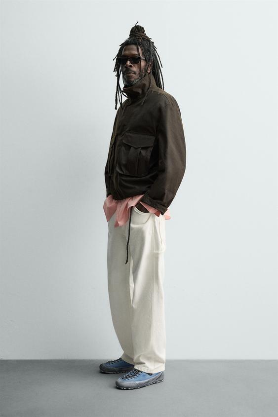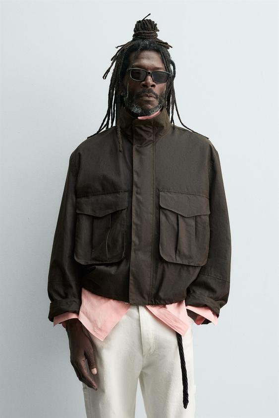 ZARA Х AARON LEVINE УКОРОЧЕННАЯ КУРТКА С ЭФФЕКТОМ ВОЩЕНОЙ ТКАНИ, КОРИЧНЕВЫЙ