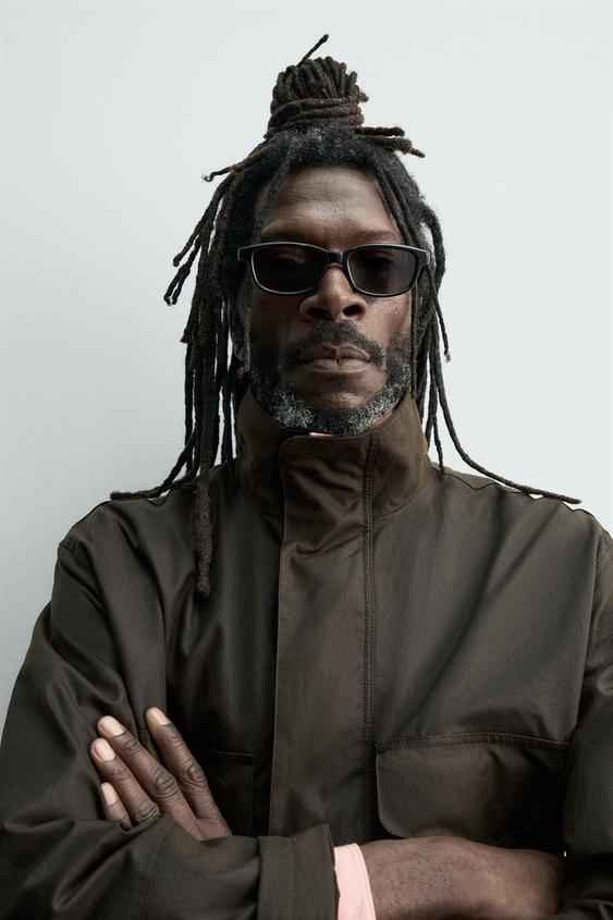Укороченная куртка из хлопчатобумажной ткани со слегка вощеным покрытием. Воротник-стойка и длинные рукава с регулируемыми манжетами на кнопках. Накладные карманы с клапанами спереди. Внутренний карман. Регулируемый низ с внутренней резинкой. Застежка-молния скрыта планкой на кнопках.