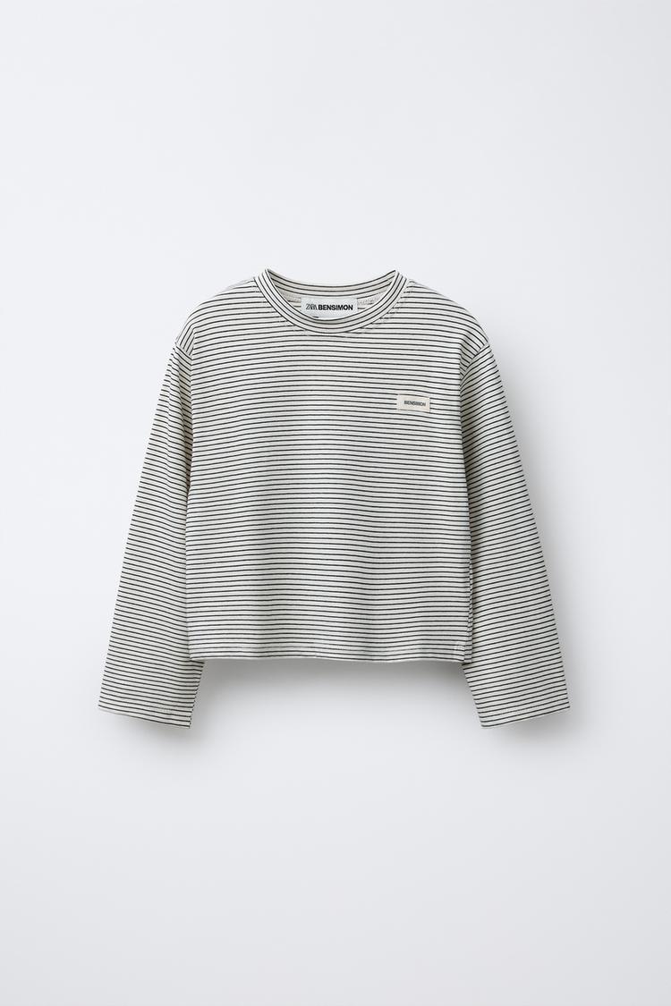 ZARA Х BENSIMON® ФУТБОЛКА С ДЛИННЫМИ РУКАВАМИ, ЭКРЮ