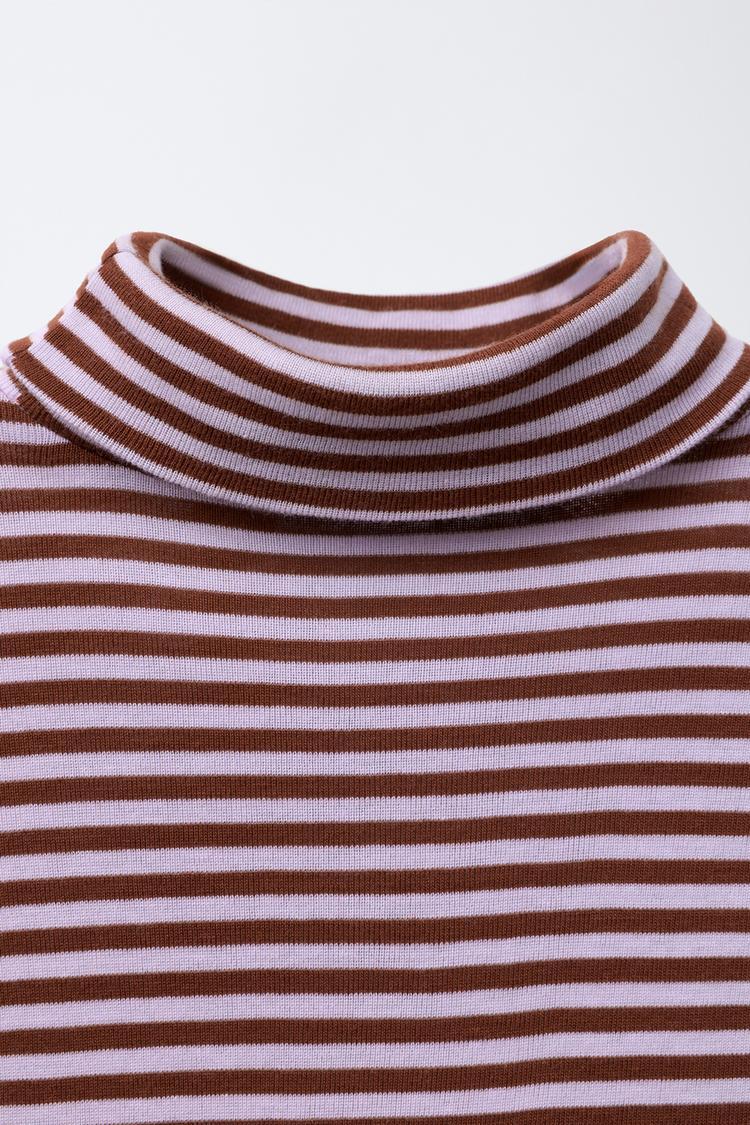 Футболка с высоким воротником, длинными рукавами. В полоску.