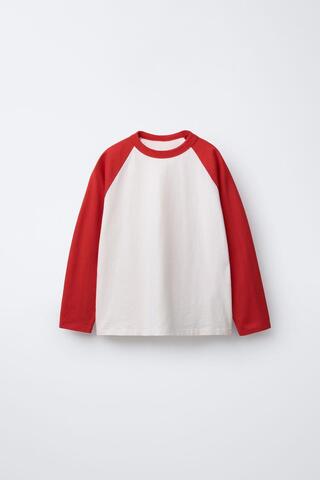 Футболка с круглым вырезом и длинными рукавами реглан. 100% хлопковая ткань.
