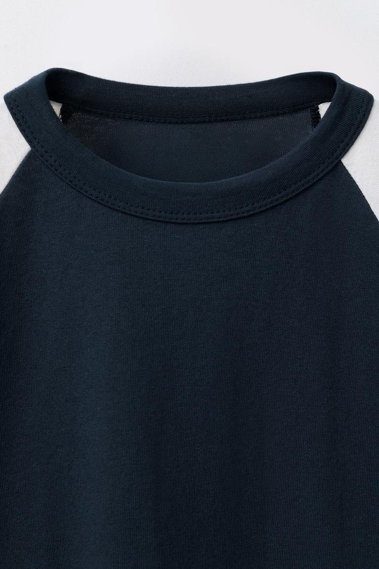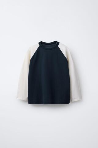 Футболка с круглым вырезом и длинными рукавами реглан. 100% хлопковая ткань.
