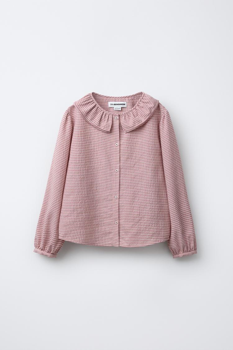 ZARA Х BENSIMON ® РУБАШКА С ДЛИННЫМИ РУКАМИ В КЛЕТКУ, КЛУБНИЧНЫЙ