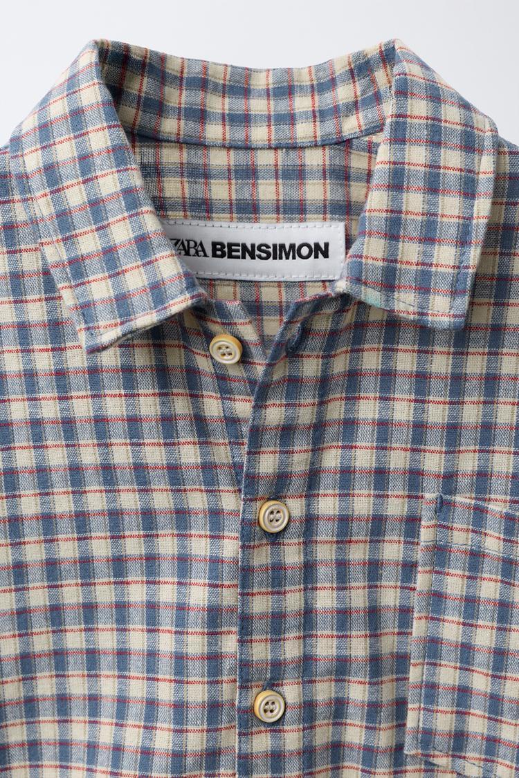 ZARA Х BENSIMON ® РУБАШКА В КЛЕТКУ С ДЛИННЫМИ РУКАВАМИ, СИНИЙ