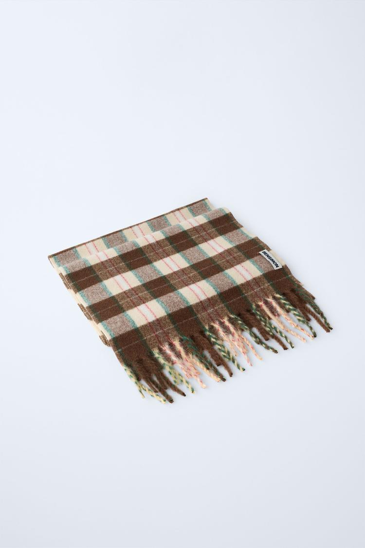 ZARA Х BENSIMON ® ШАРФ В КЛЕТКУ, КОРИЧНЕВЫЙ