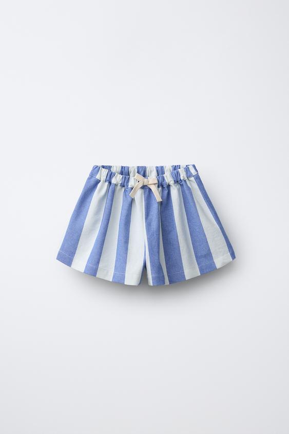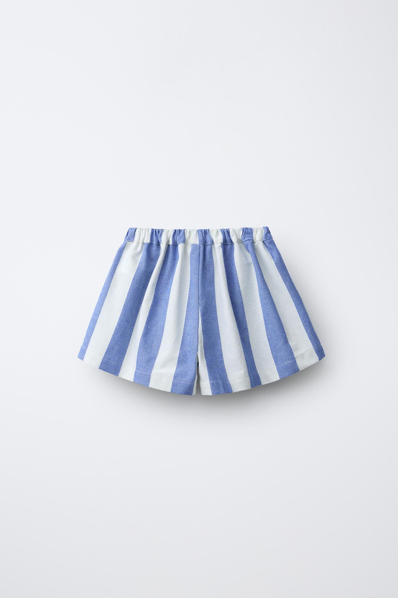 ZARA Х CASA LAWA ШИРОКИЕ ШОРТЫ В ПОЛОСКУ, СИНИЙ