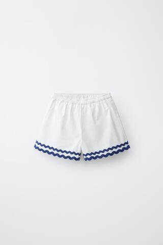 Шорты с эластичным поясом и контрастной волнистой отделкой.
