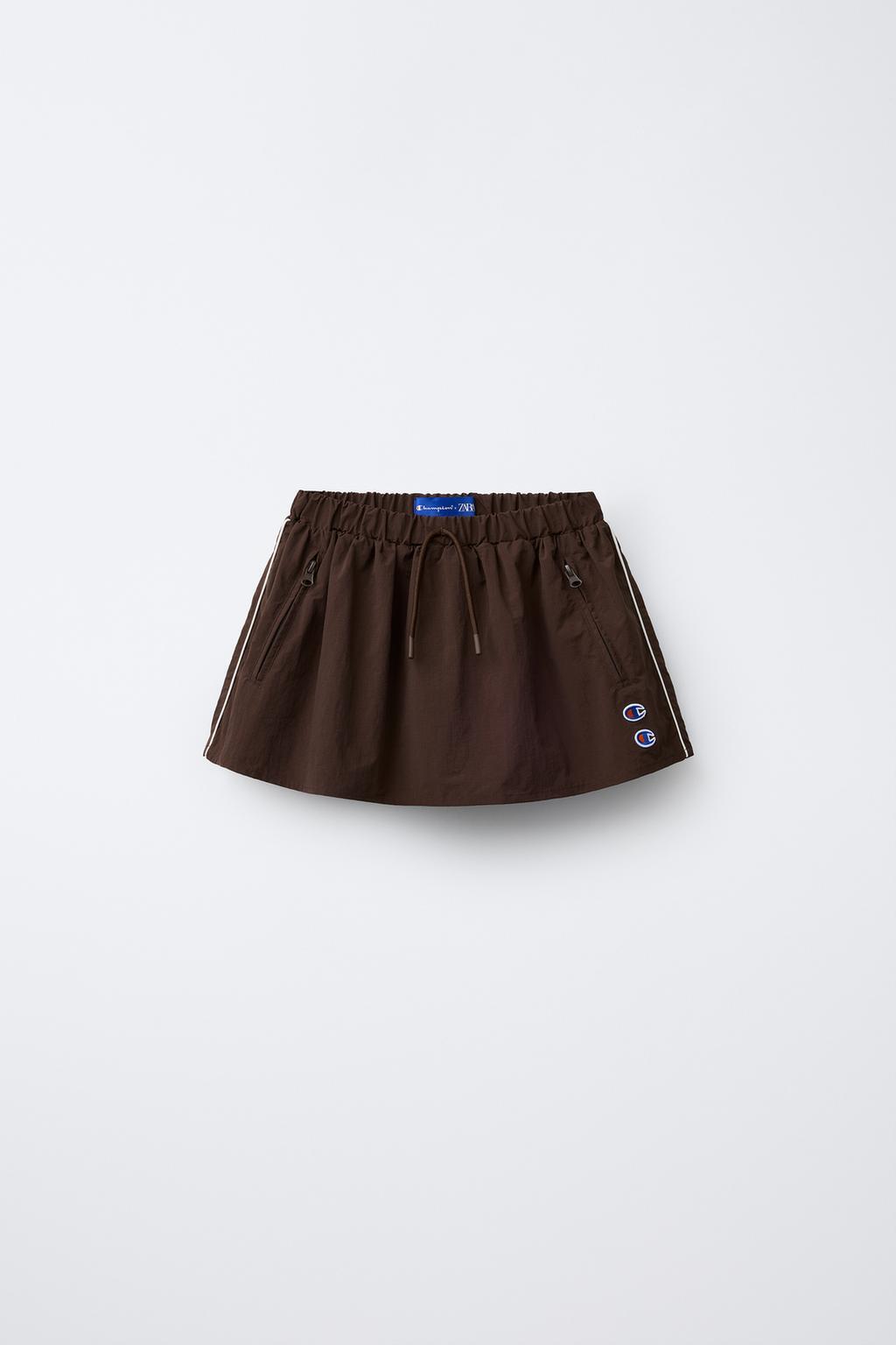 ZARA Х CHAMPION ® ЮБКА-ШОРТЫ ИЗ НЕЙЛОНА, КОРИЧНЕВЫЙ