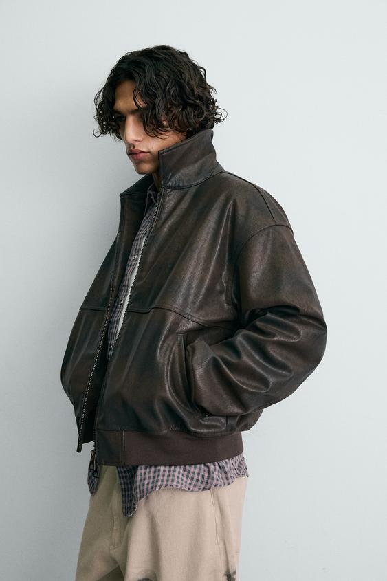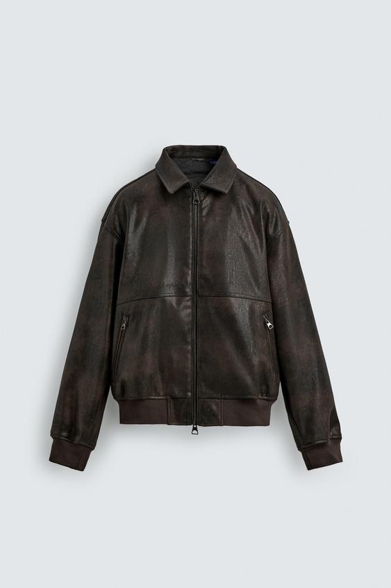 ZARA Х FORD БОМБЕР ИЗ ИСКУССТВЕННОЙ КОЖИ С ТИСНЕНИЕМ, КОРИЧНЕВЫЙ