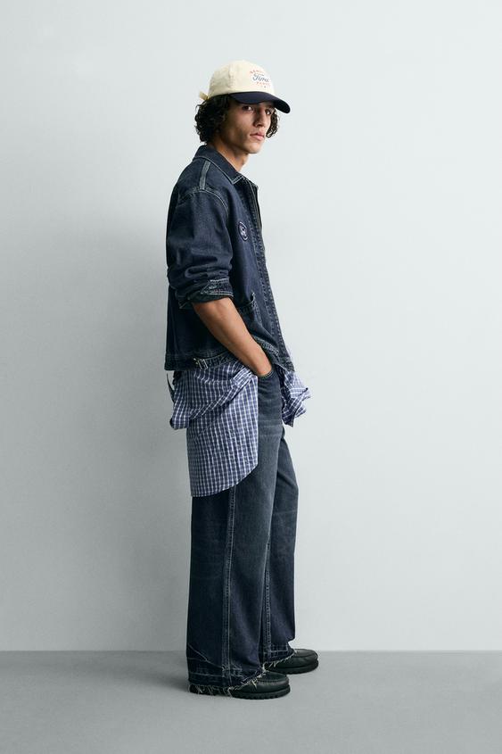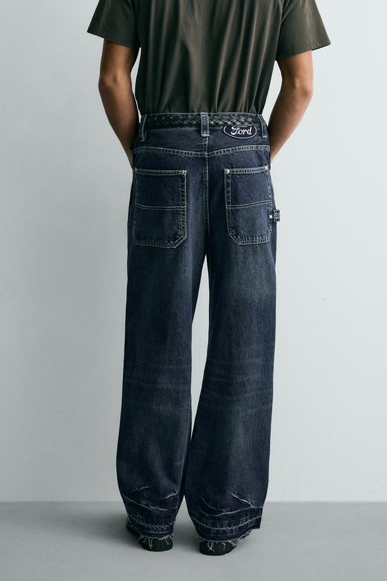 ZARA Х FORD ДЖИНСЫ RELAXED FIT С НАШИВКОЙ, СИНИЙ