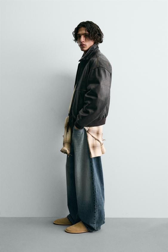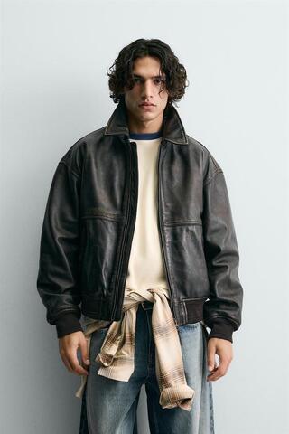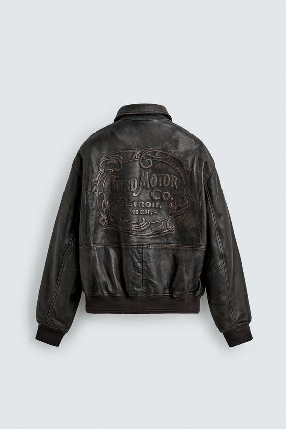 ZARA Х FORD КОЖАНАЯ КУРТКА-БОМБЕР, КОРИЧНЕВЫЙ