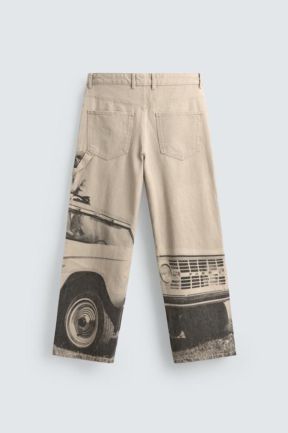 ZARA Х FORD ШИРОКИЕ БРЮКИ С ПРИНТОМ, СЕРО-БЕЖЕВЫЙ