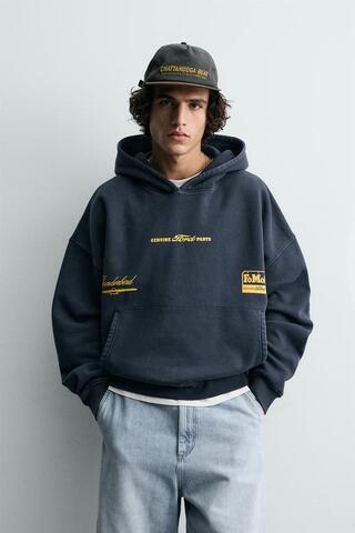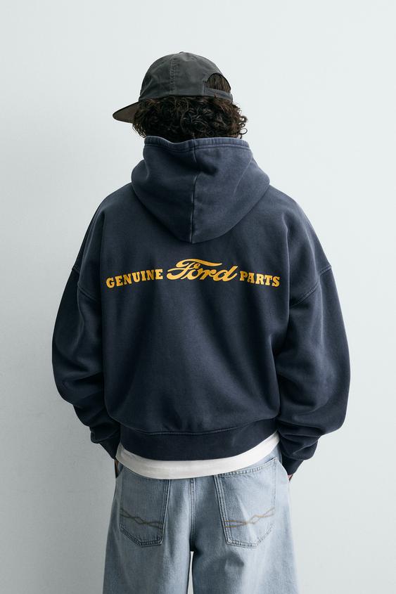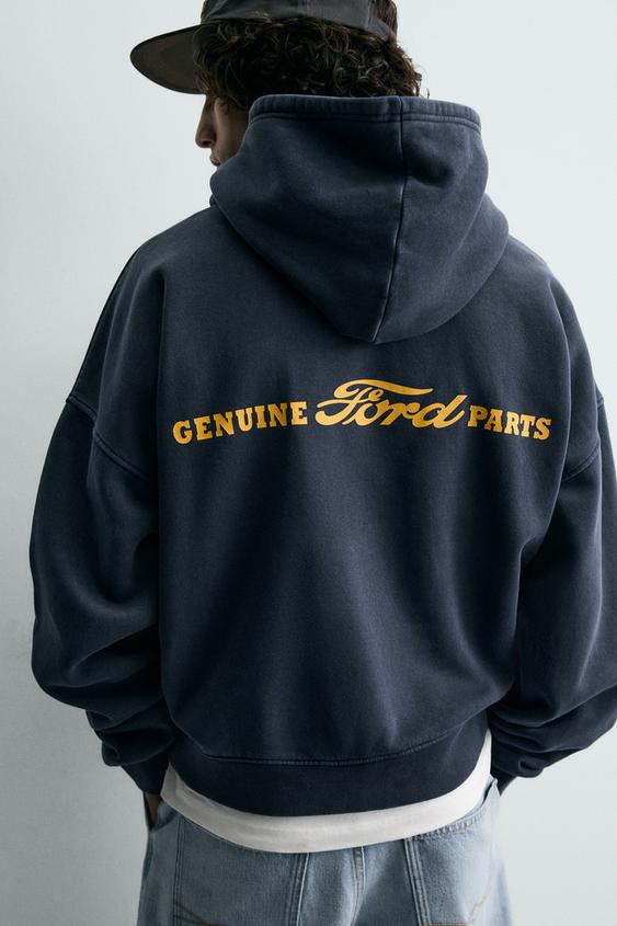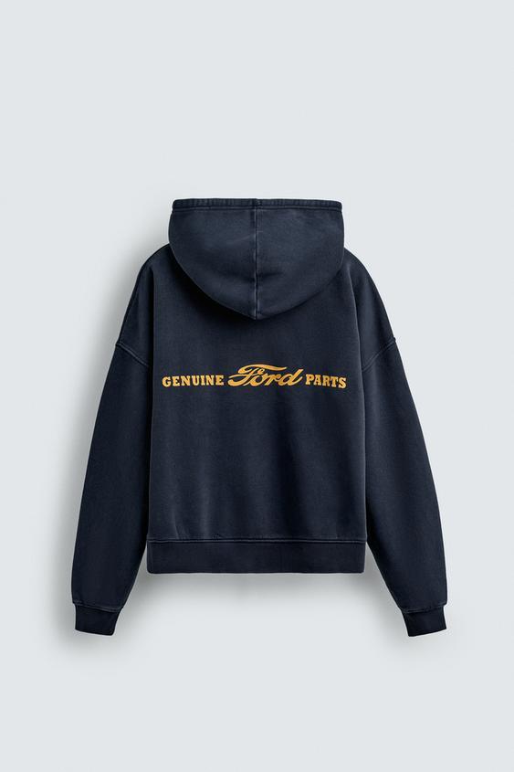 ZARA Х FORD ТОЛСТОВКА С КОМБИНИРОВАННЫМИ НАДПИСЯМИ, МОРСКОЙ СИНИЙ