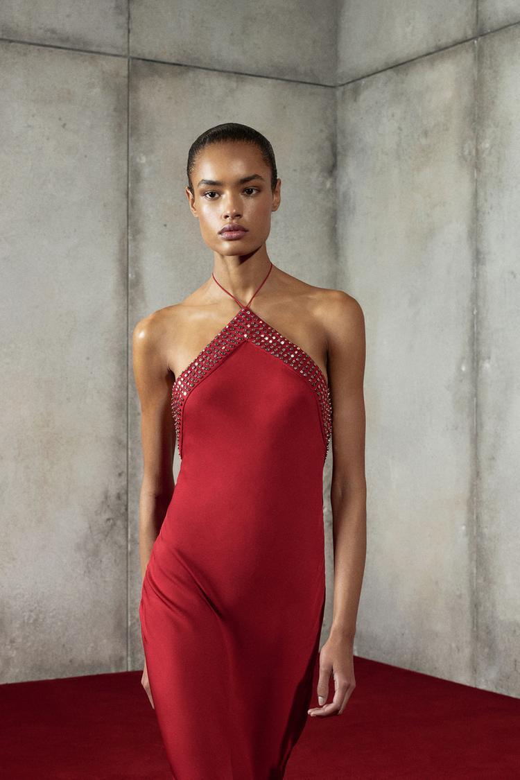 ZARA Х LUDOVIC DE SAINT SERNIN АТЛАСНОЕ ПЛАТЬЕ, КРАСНЫЙ