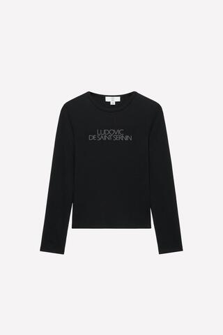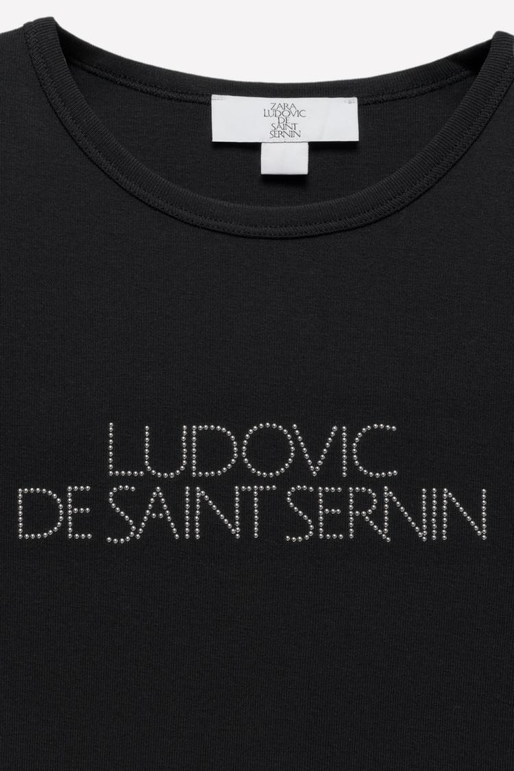 ZARA Х LUDOVIC DE SAINT SERNIN ФУТБОЛКА С БЛЕСТЯЩЕЙ НАДПИСЬЮ, ЧЕРНЫЙ