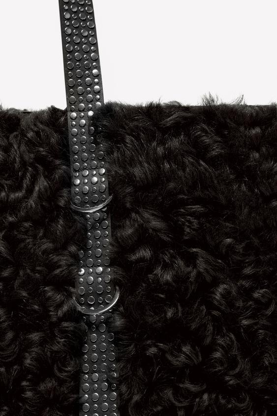Сумка-шоппер Maxi из кожи с отделкой из овчины. Двойная ручка из комбинации материалов с заклепками. Внутренний карман на молнии. Застежка-клипса.