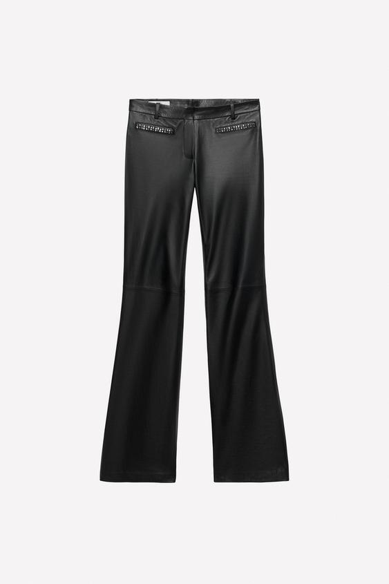 ZARA Х LUDOVIC DE SAINT SERNIN КОЖАНЫЕ БРЮКИ С ОТВОРОТАМИ, ЧЕРНЫЙ