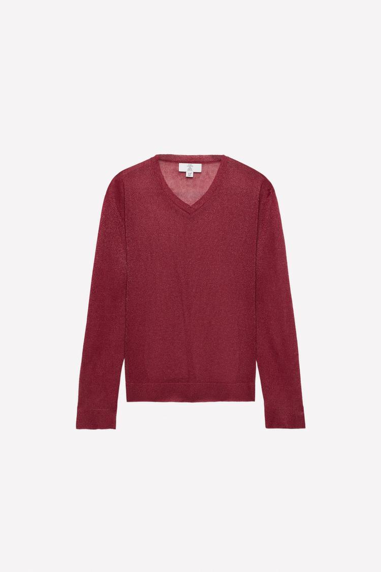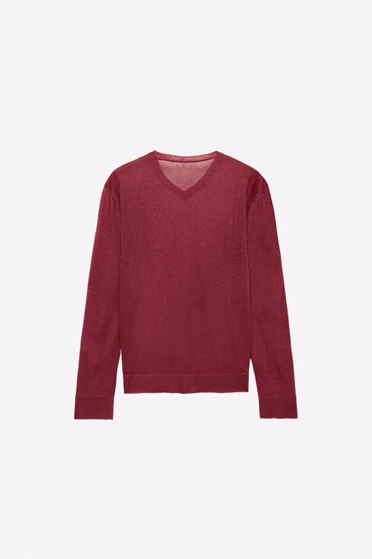 ZARA Х LUDOVIC DE SAINT SERNIN ПОЛУПРОЗРАЧНЫЙ ДЖЕМПЕР, БОРДОВЫЙ