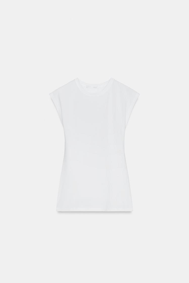 ZARA ХЛОПКОВАЯ ФУТБОЛКА, БЕЛЫЙ