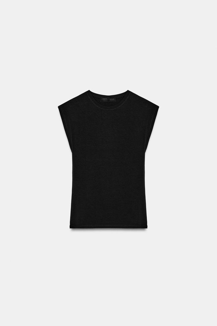 ZARA ХЛОПКОВАЯ ФУТБОЛКА, ЧЕРНЫЙ