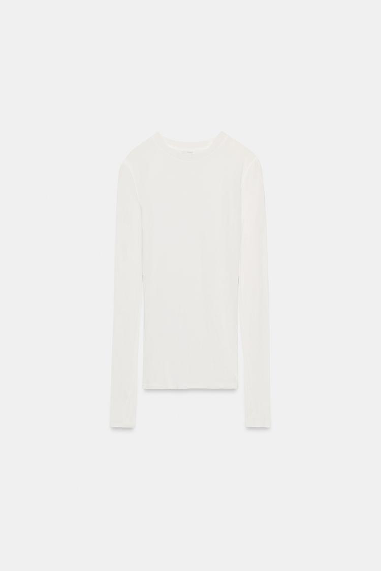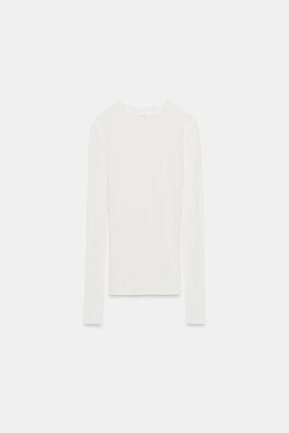 ZARA ХЛОПКОВАЯ ФУТБОЛКА С ДЛИННЫМИ РУКАВАМИ, ЖЕЛТОВАТО-БЕЛЫЙ