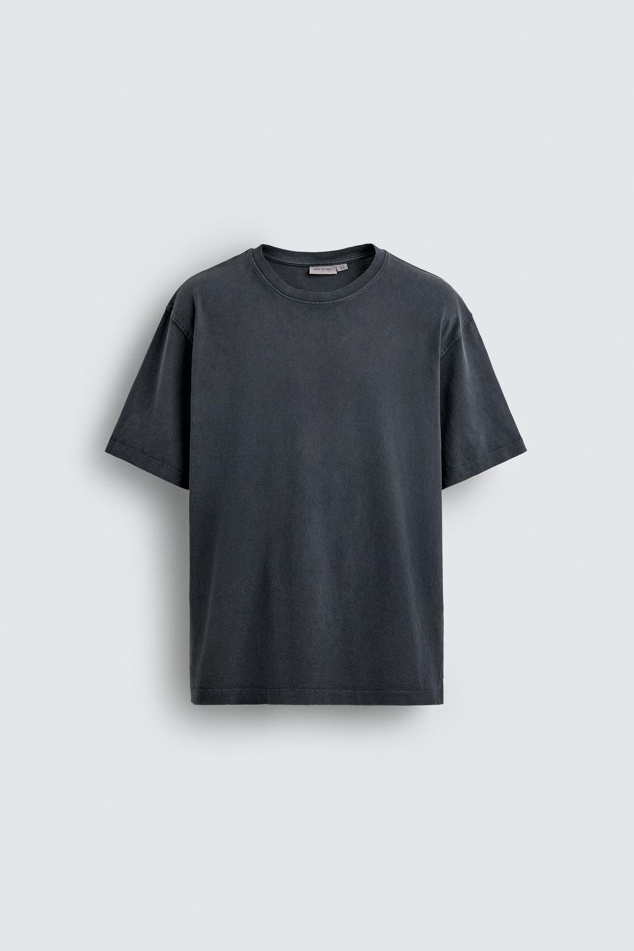 ZARA ХЛОПКОВАЯ ФУТБОЛКА С КОРОТКИМИ РУКАВАМИ, АНТРАЦИТОВО-СЕРЫЙ