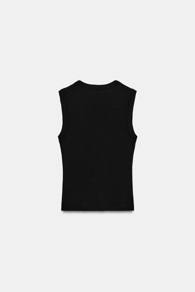 ZARA ХЛОПКОВАЯ ФУТБОЛКА С V-ОБРАЗНЫМ ВЫРЕЗОМ, ЧЕРНЫЙ