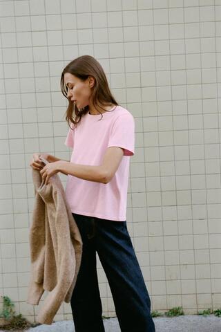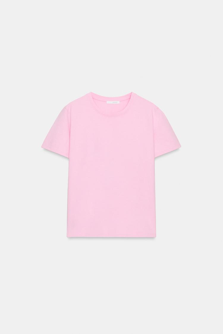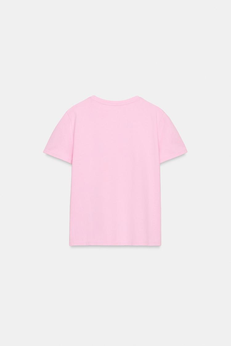 ZARA ХЛОПКОВАЯ ФУТБОЛКА В СТИЛЕ РУСТИК, РОЗОВЫЙ
