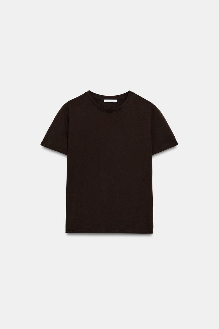 ZARA ХЛОПКОВАЯ ФУТБОЛКА В СТИЛЕ РУСТИК, ШОКОЛАДНЫЙ