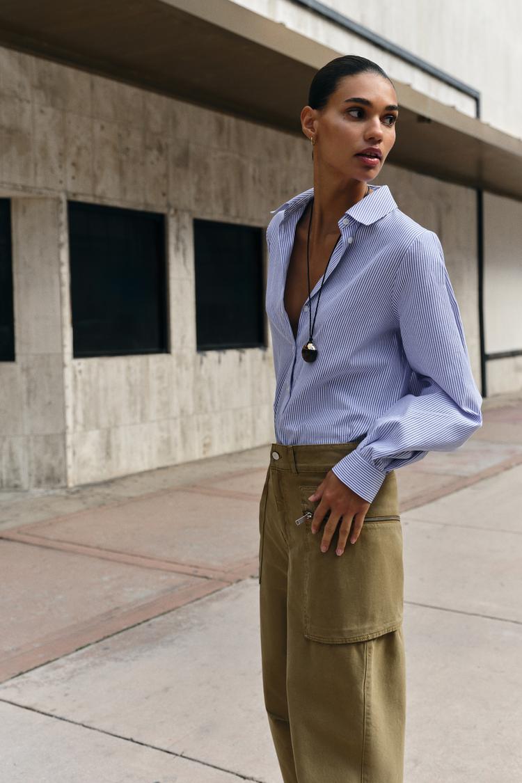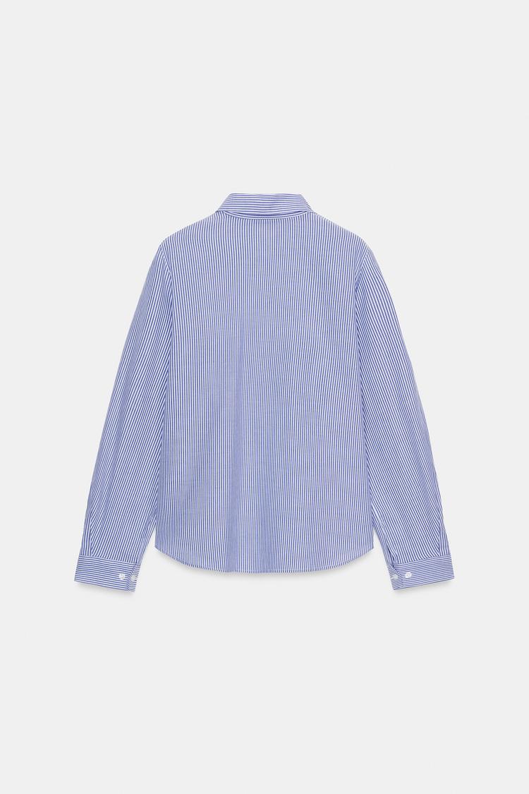 ZARA ХЛОПКОВАЯ РУБАШКА В ПОЛОСКУ, ЭКРЮ/СИНИЙ