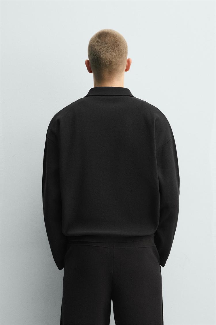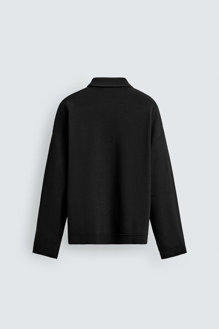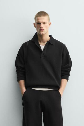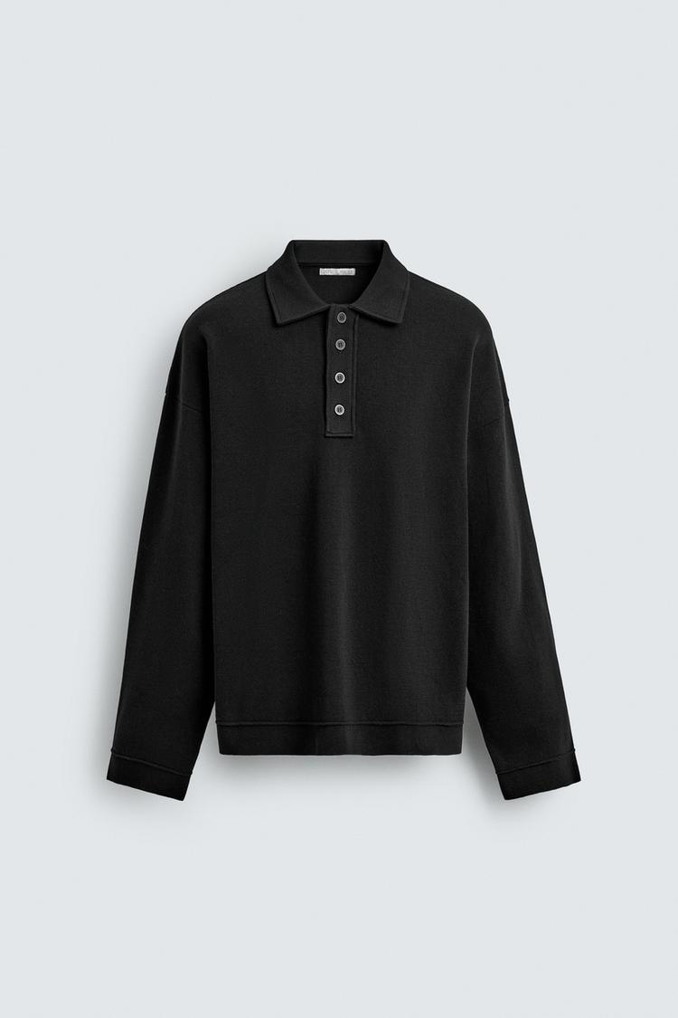 ZARA ХЛОПКОВОЕ ТРИКОТАЖНОЕ ПОЛО, ЧЕРНЫЙ