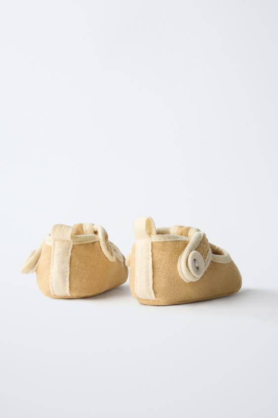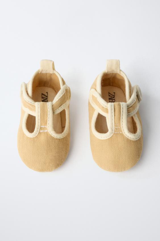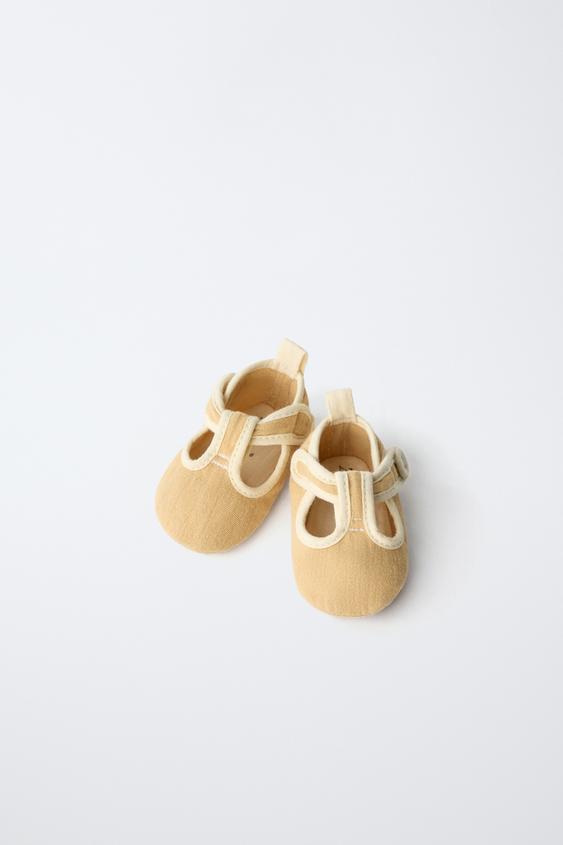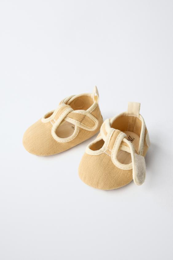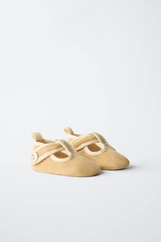 Пинетки-сандалии из 100% хлопка. Застежка на липучке с пуговицей на ремешке.