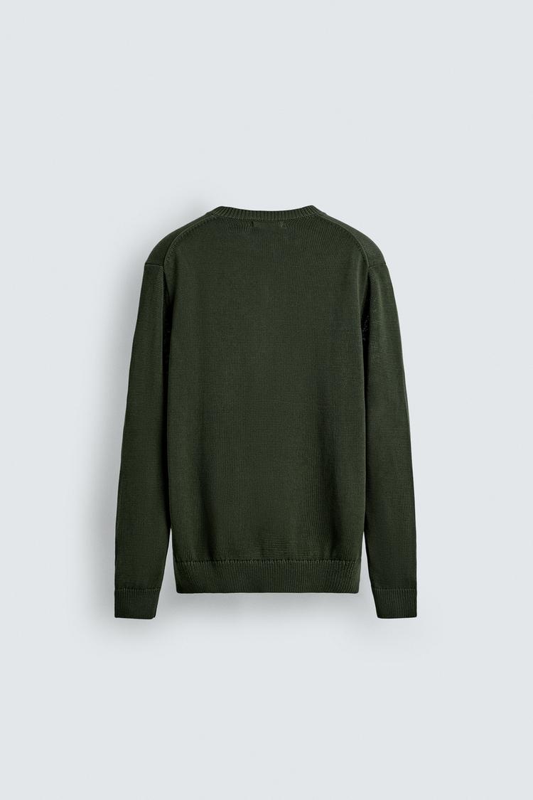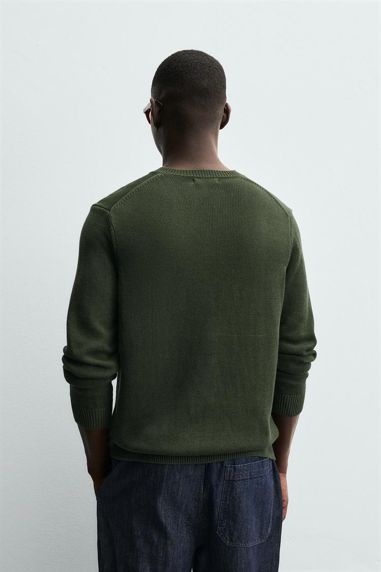 ZARA ХЛОПКОВЫЙ ДЖЕМПЕР С V-ОБРАЗНЫМ ВЫРЕЗОМ, ЗЕЛЕНЫЙ