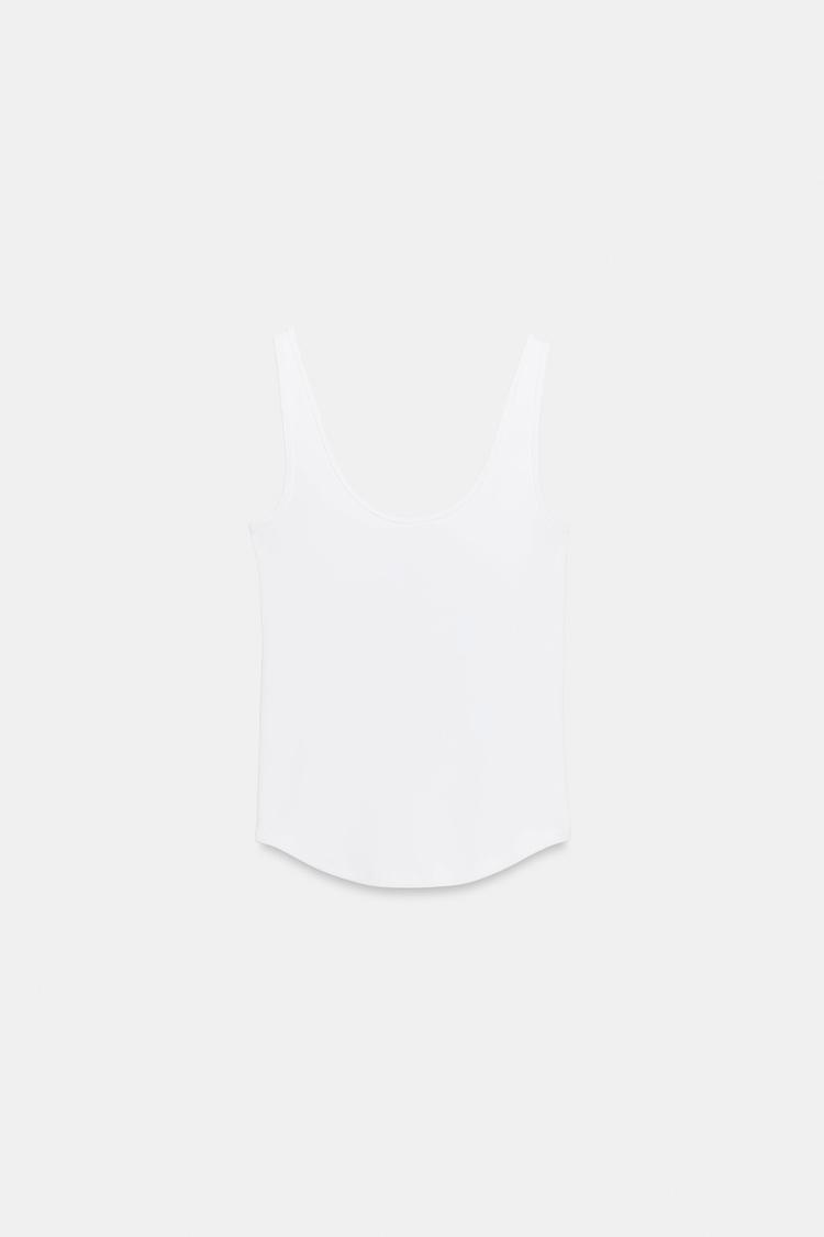 ZARA ХЛОПКОВЫЙ ТОП НА БРЕТЕЛЯХ, БЕЛЫЙ