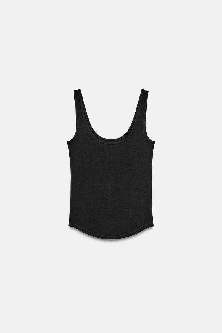 ZARA ХЛОПКОВЫЙ ТОП НА БРЕТЕЛЯХ, ЧЕРНЫЙ