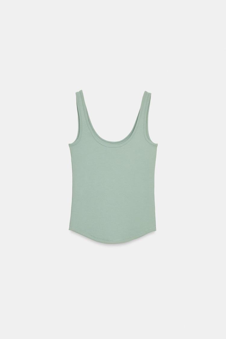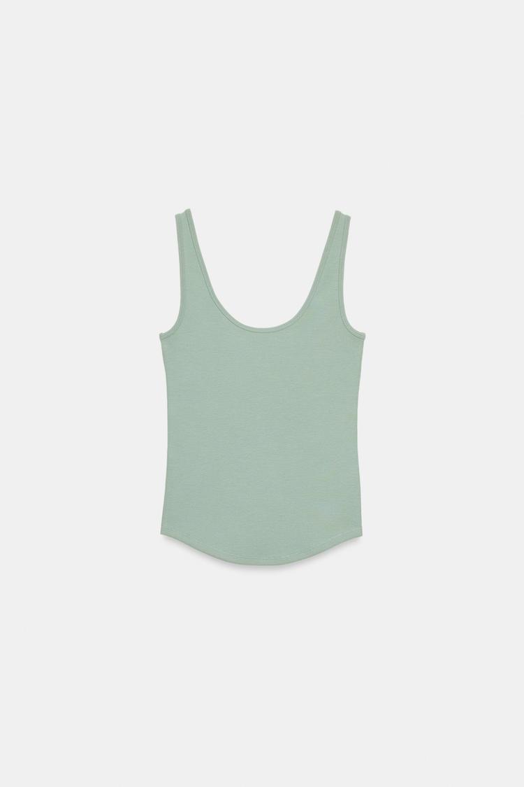 ZARA ХЛОПКОВЫЙ ТОП НА БРЕТЕЛЯХ, ЗЕЛЕНОВАТЫЙ