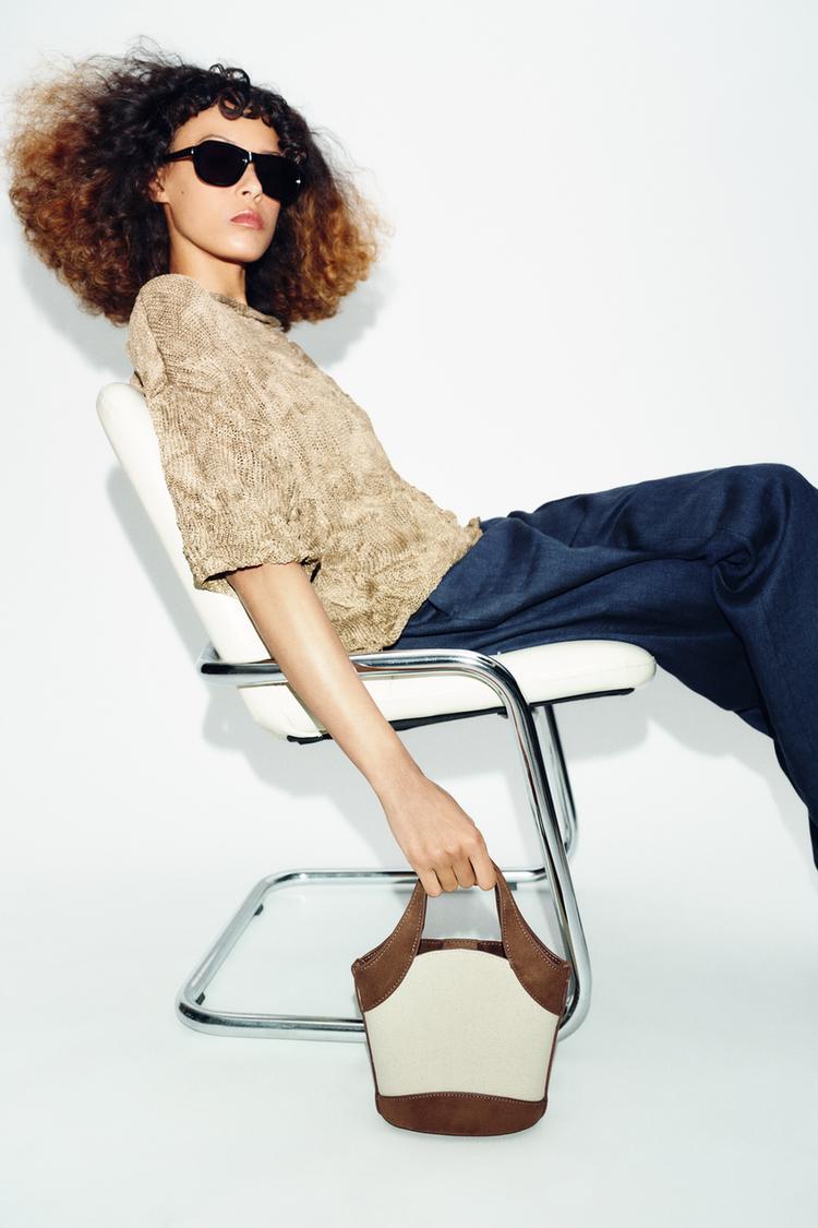 ZARA ХОЛЩОВАЯ СУМКА С ПЛЕЧЕВЫМ РЕМНЕМ, КОРИЧНЕВЫЙ