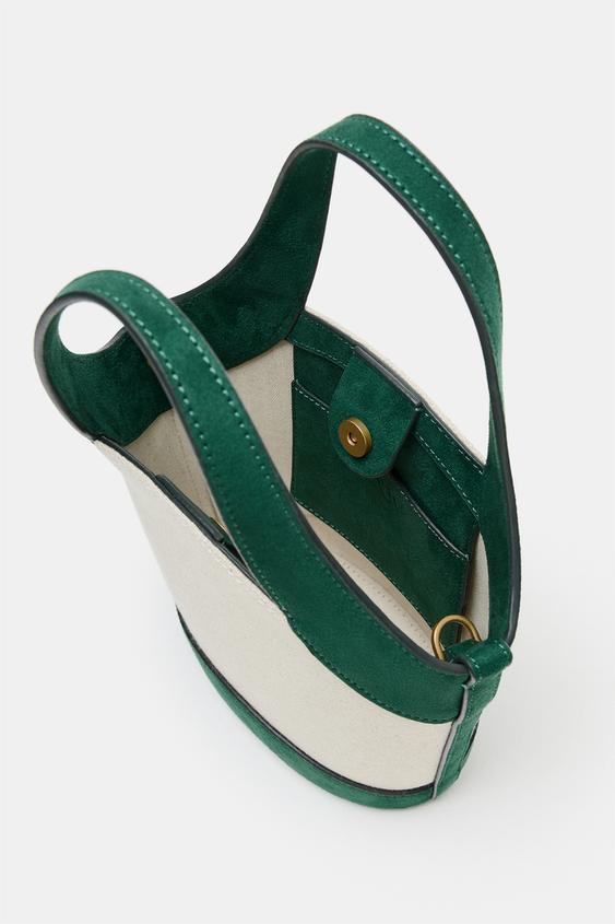 ZARA ХОЛЩОВАЯ СУМКА С ПЛЕЧЕВЫМ РЕМНЕМ, ЗЕЛЕНЫЙ