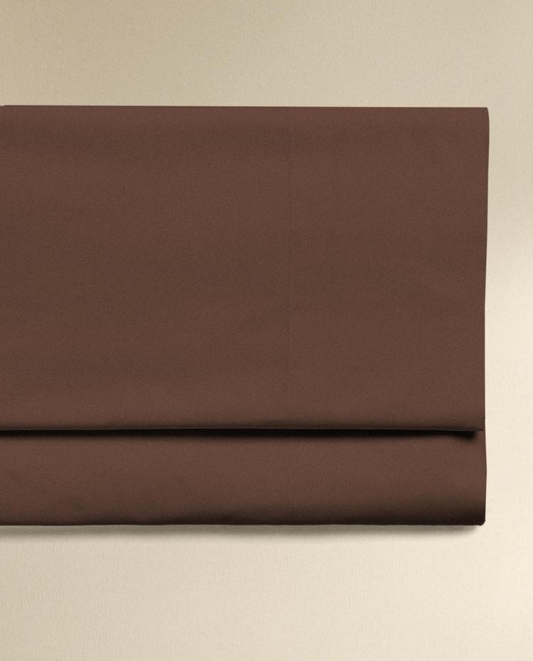 ZARA HOME (200 НИТЕЙ) ПРОСТЫНЯ ИЗ ХЛОПКА ПЕРКАЛЬ, ШОКОЛАДНО-КОРИЧНЕВЫЙ